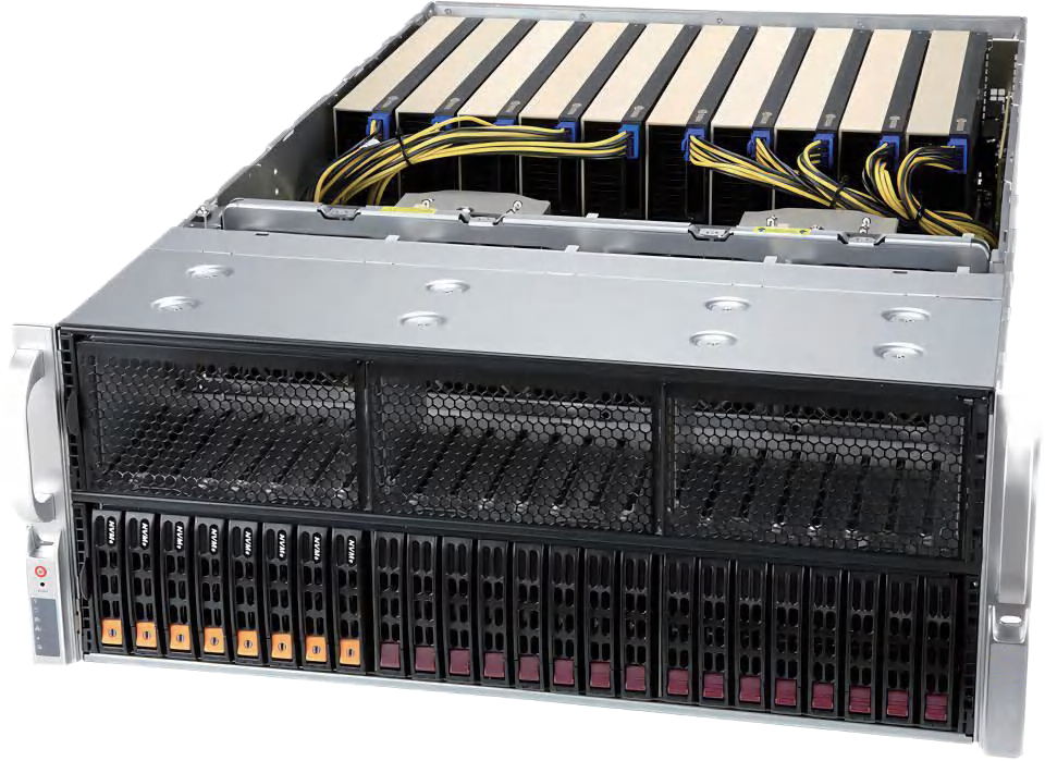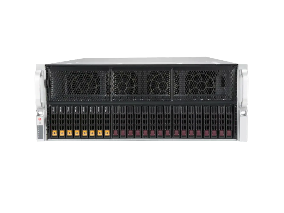 高密度海量AI计算服务器H4880G3;整机外形方面采用4U标准高度设计,采用Intel最新一代XEON Whitley系列处理器;整机支持最高达64个处理核心,在4U空间可以容纳10片全高全长双宽的GPU计算卡,使服务器的GPU计算性能无比强大,计算性能处于行业领先地位。